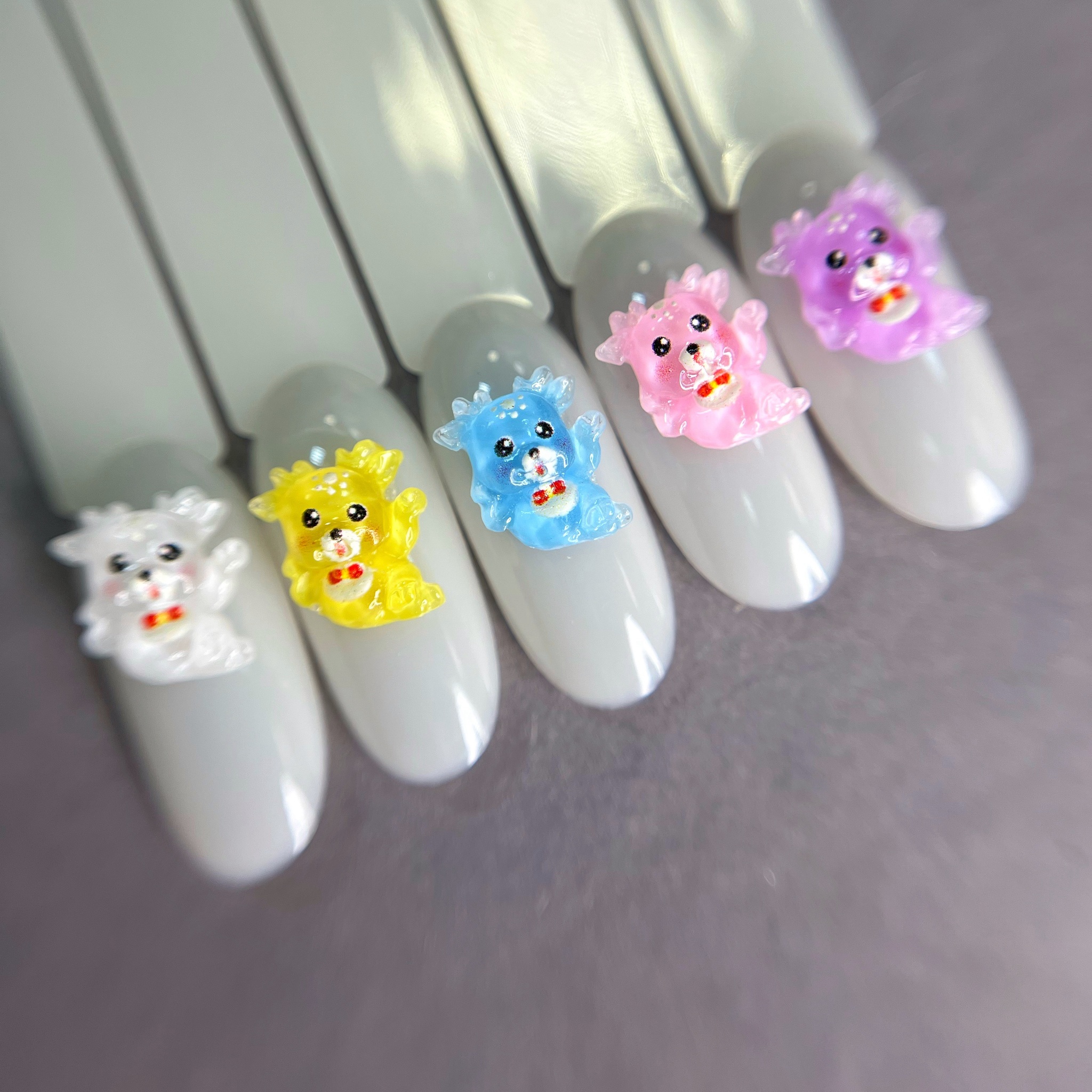 2. Смешайте базу и акриловую пудру, нанесите на подготовленный ноготь на место крепления фигурки.